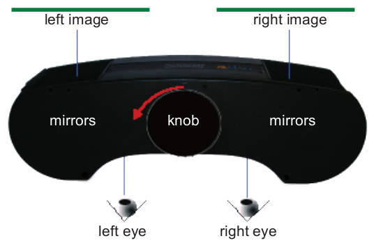 The stereoscope with integrated mirrors is very easy to adjust using a simple knob. Once it is properly set for your vision, you will not need to change it.